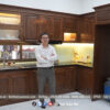 Tủ bếp được anh Phong lựa chọn làm bằng chất liệu gỗ công nghiệp mdf lõi xanh chống ẩm