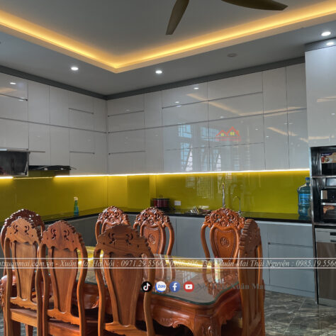 Tủ bếp trên kịch trần khung thùng chất liệu mdf lõi xanh chống ẩm phủ Melmaine, Cánh Acrylic bóng gương