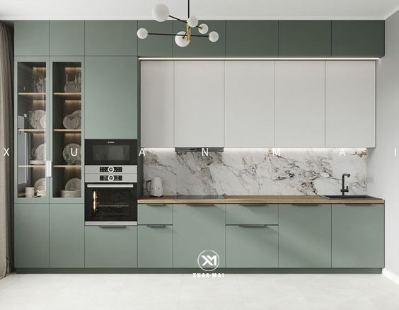 Nếu không gian bếp của bạn có chiều cao tốt, tủ chữ I với hệ thống tủ cao là lựa chọn thông minh. Các ngăn tủ cao giúp bạn có thêm không gian lưu trữ đồ dùng bếp, từ chén đĩa đến các dụng cụ nấu ăn, giúp không gian bếp luôn gọn gàng và tiện dụng. Mẫu tủ này rất thích hợp với các gia đình có nhu cầu lưu trữ đồ dùng lớn hoặc các căn bếp có diện tích rộng.